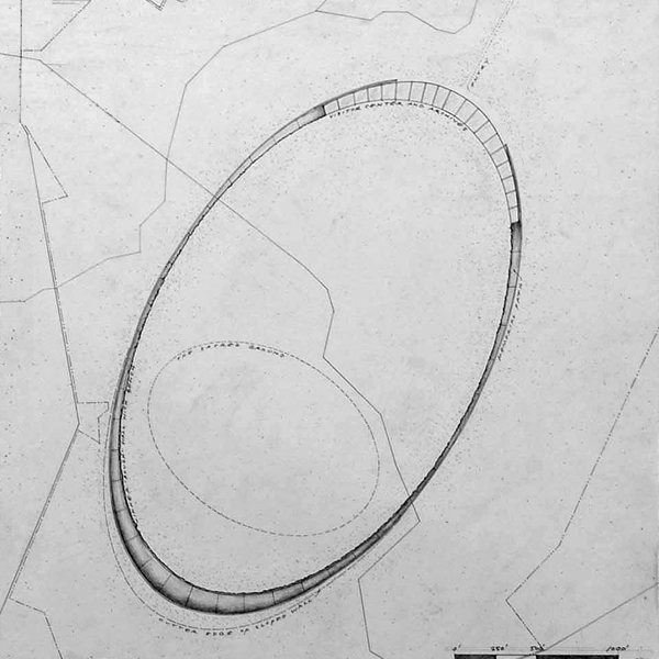 encircled by an ellipse in plan, the crash site is defined as a sacred precinct